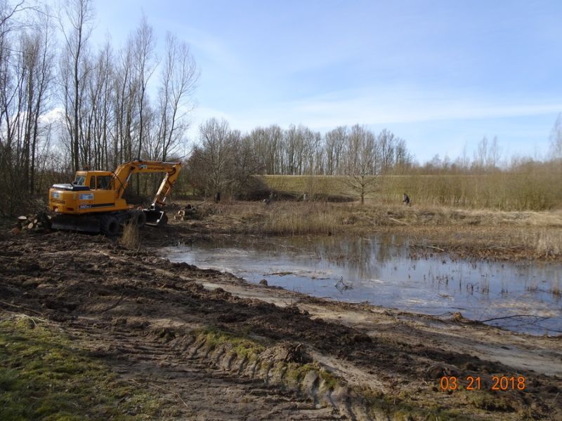 Op zaterdagmorgen waren enkele vrijwilligers van onze vogelwerkgroep al vroeg op de locatie. De beplanting was afgeleverd en lag opgeslagen op de gemeentewerf van Meppel. Deze moest eerst opgehaald worden. Verder moest er voor de koffievoorziening ook het een en ander geregeld worden. Omstreeks 9.00 uur kwamen de vrijwilligers. Na een inleidend verhaal van Hilbert Folkerts zijn wij aan de slag gegaan. Door het grote aantal vrijwilligers werden de struiken (een kleine 300 stuks) in twee uur tijd in de grond gestopt. Daarna werd de omheining, deze was deels weggehaald om de mobiele kraan toegang tot het gebied te geven, hersteld. Ook werden nieuwe palen voor de omheining aangebracht zodat nu het gebiedje niet meer toegankelijk is. Omstreeks 12.15 uur was de klus geklaard. Op een paar gedeeltes van het gebied kunnen nog wat planten geplaatst worden. Deze zullen op kort termijn besteld en aangeplant worden.