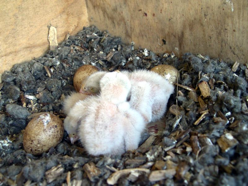 De slechtvalken hebben de beide nestkasten weer bezet. In één nestkast liggen nu 4 eieren. De andere nestkast is nog niet bezocht maar wij weten wel dat ook in deze nestkast nu gebroed wordt. Deze maand komen de eieren uit en zullen wij zien wat het uiteindelijke resultaat zal worden. Van de jongen van vorig jaar was er één die zich ophield in de buurt van Wolvega.